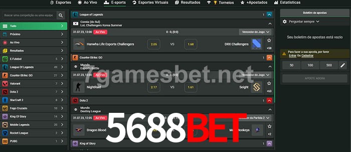 O 5688Bet oferece uma grande seleção de opções de apostas em e-sports com probabilidades competitivas